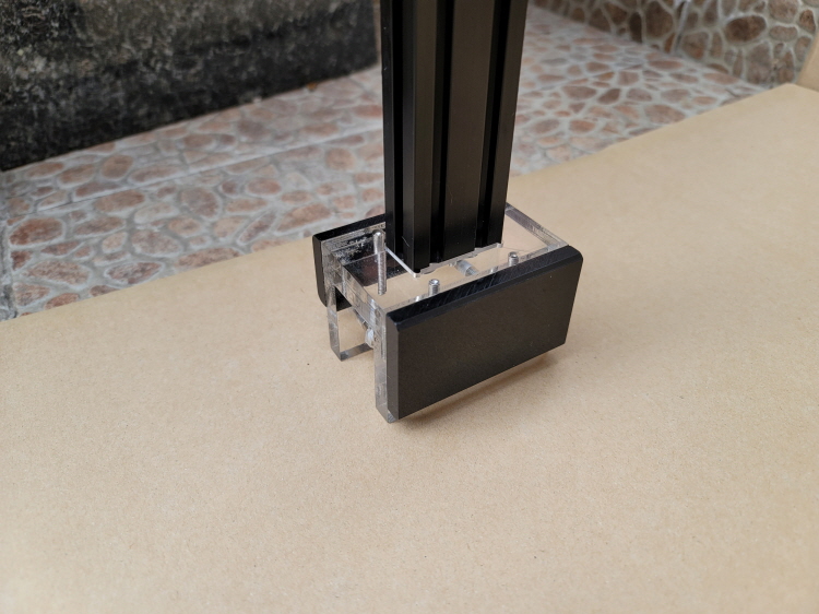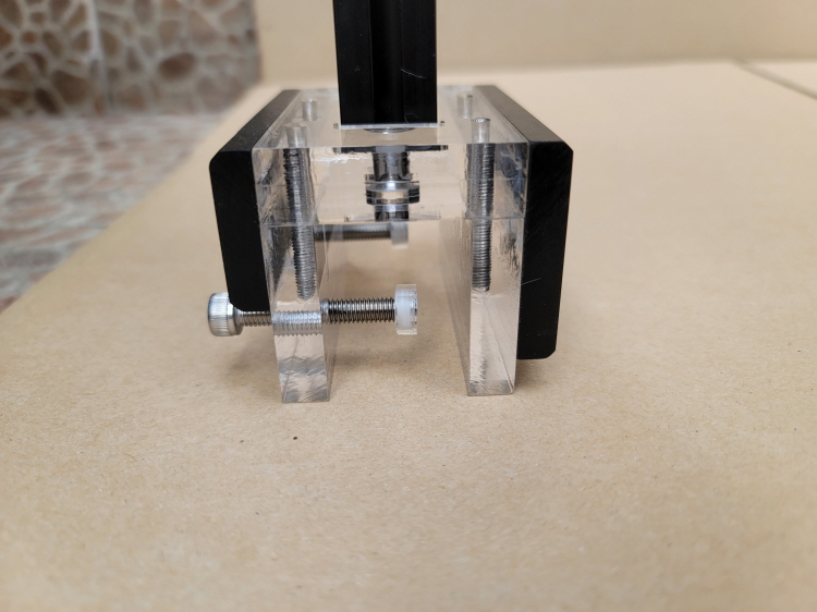 아크릴 지그와 기둥 프로파일은 5MM 서스 볼트 2개로 지지됩니다.(사람의 힘으로는 분리가 안됩니다.)