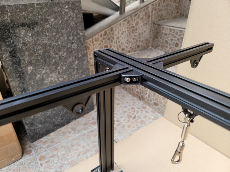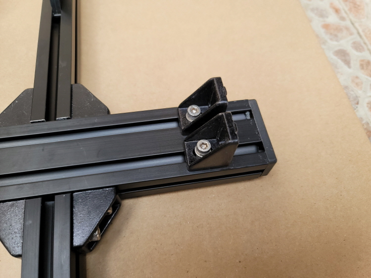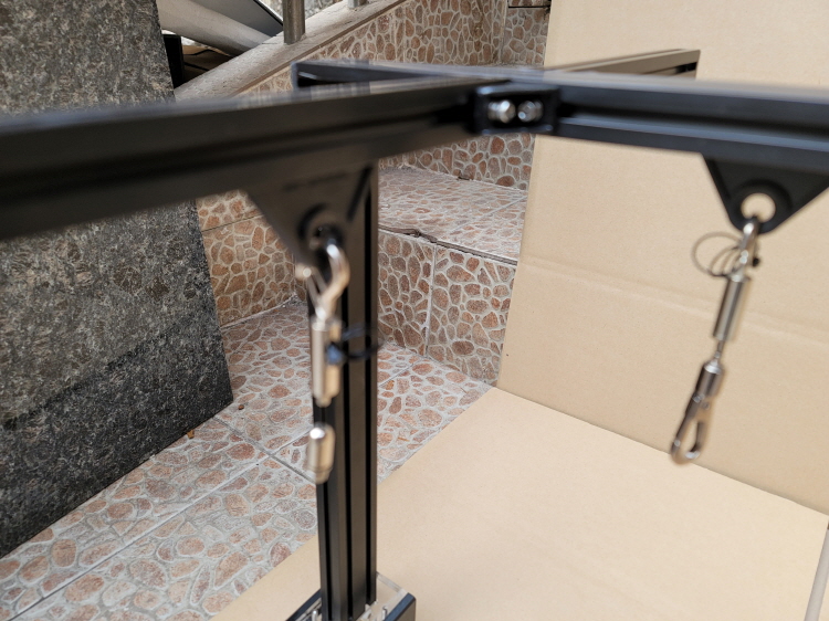 수령후 가로 프로파일 브라켓 기준점 잡아 고정시켜 놓았으니 수직 프로파일 기둥만 볼트 두개로 조여 주시면