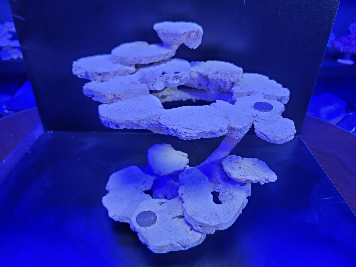 A38- 산호용 스텀프 성형락 제작하는데 오랜 시간이 소요된 퀼리티가 아주 좋은 스텀프 성형락 입니다.4600~900 수조에 안착하여 사용하실 수 있습니다.스텀프락은 보통 일반 성형락 만드는 시간에 최소 3배 정도 제작 시간이 걸리는 성형락 입니다.세라믹 줄기와. 플레이트에 샌드가루를 계속 입혀가며 크기와 두께 모양을 만들기 때문입니다.이번 성형락은 줄기를 아주 두껍게 강약 조절을 하여 분제 줄기는 보는것 같이 곡선의 미를 강조해서 메인축을 잡았습니다.마무리로 플레이트 상단에 홍산호 가루를 뿌려주어 색상 포인트를 주었습니다.실제로 보시면 입체감이 아주 좋습니다. 제품입니다. (사진상 입체감이 표현 안됨)플레이트에 올려 놓은 500동전 크기를 감안하시고 보세요.. 크고 작은 산호 모두 올릴 수 있습니다.수작업 스텀프 줄기+수작업 세라.. 라이브락/스텀프 성형락 2024.07.12