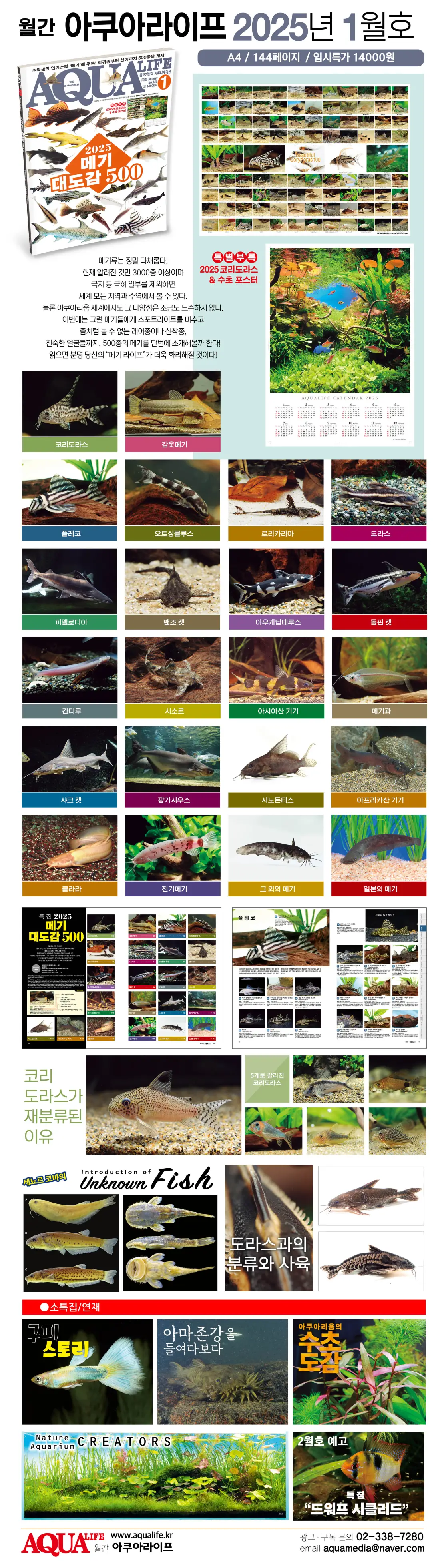 월간 아쿠아라이프 2025년 1월호 : 메기 대도감 500 https://smartstore.naver.com/searex/products/11311619173 2025년 1월호 : 메기 대도감 500 : 씨렉스공방[씨렉스공방] 해수용품.성형락.양말필터.활성탄.세라믹여과제.조명거치대.프렉스테이션.해수염smartstore.naver.com 기타 /서적 2025.01.02
