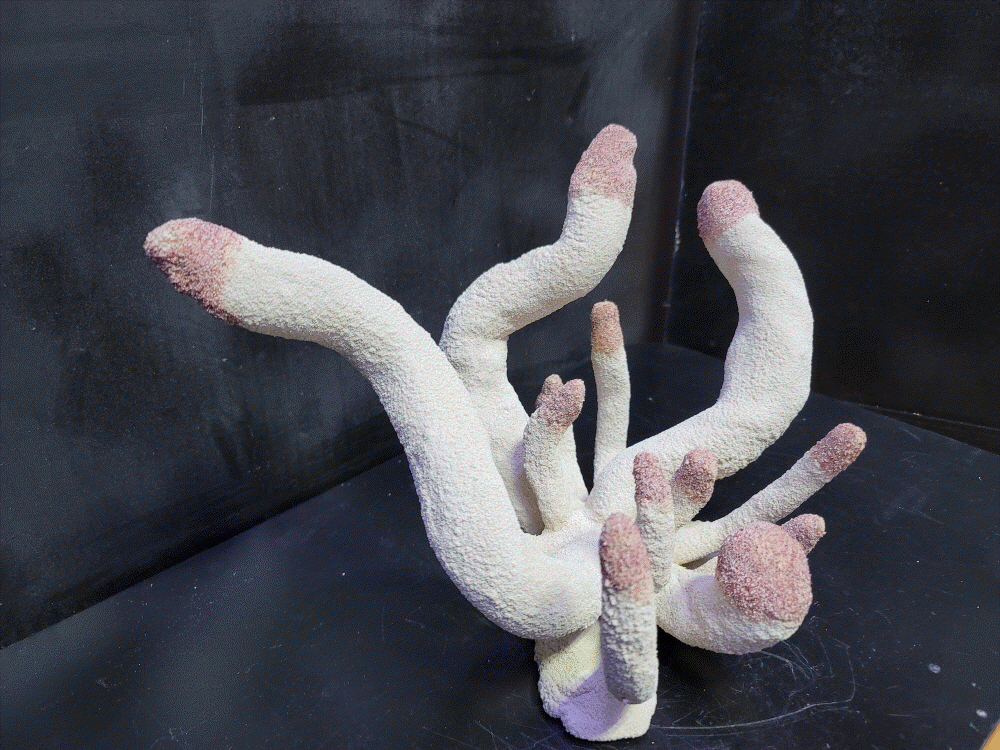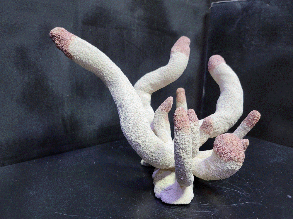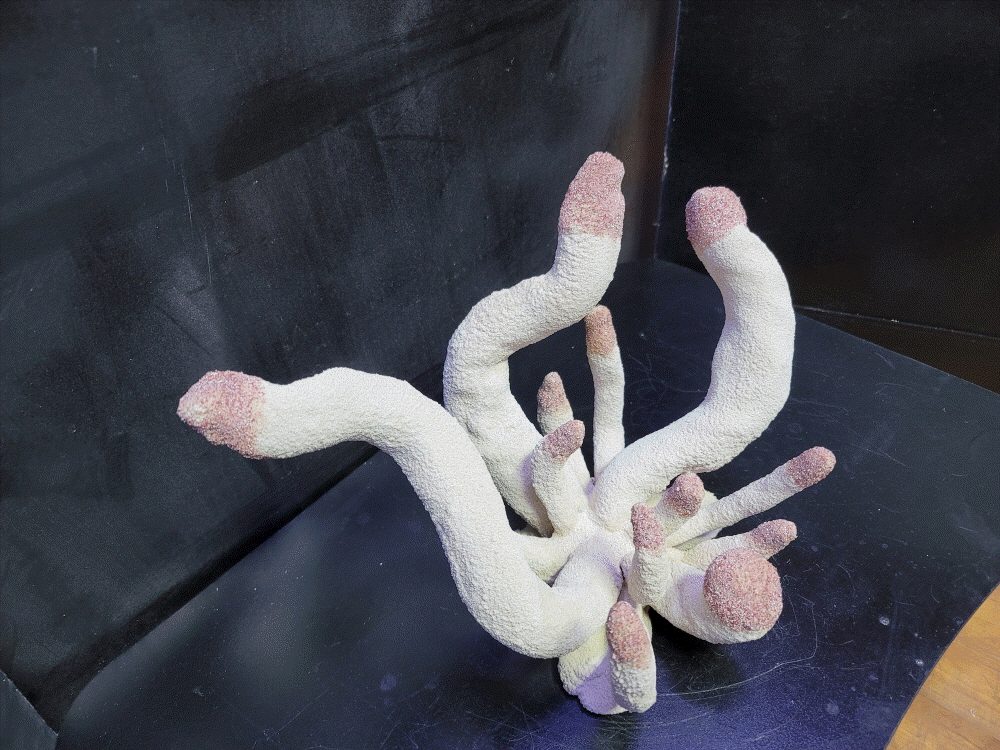 가지 끝부분을 홍산호 가루로 작업하여 색상 포인트를 주었습니다.
