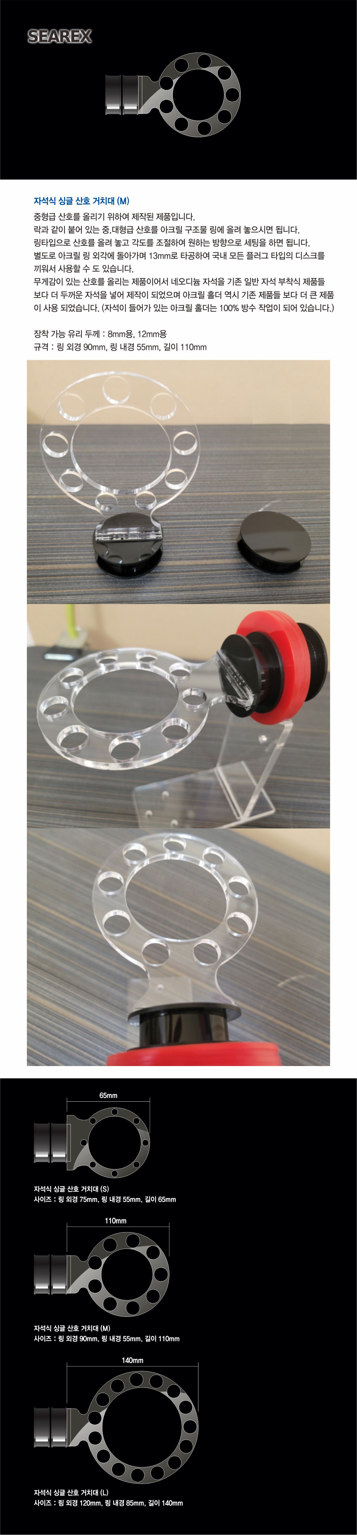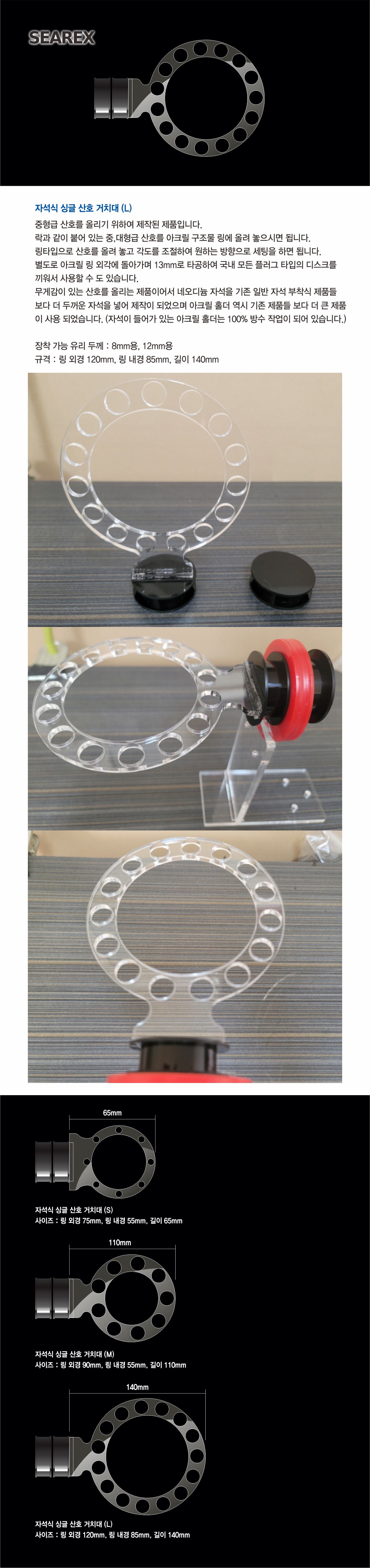 자석식 싱글 산호 거치대 (L)-8, 12mm 수조용-씨렉스