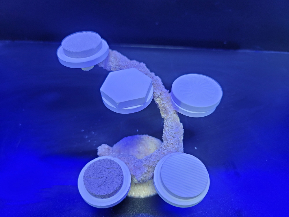 ** 수류가 강하거나 고기들이 산호를 건드려도 산호가 바닥에 떨어지지 않게 플러그 타입의 디스크를 장착 가능하게 제작 하였습니다.