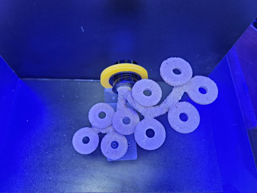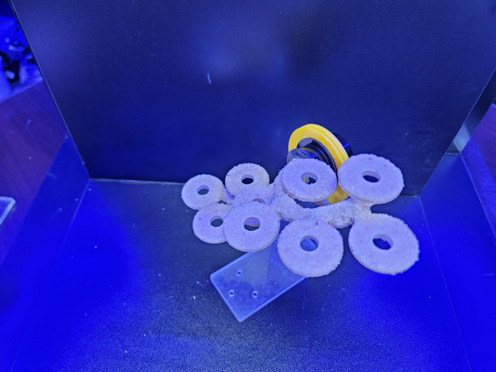 ** 레이져 가공된 원형 아크릴 플레이트에 앞.뒤로 아라고나이트샌드를 입혀 제작.