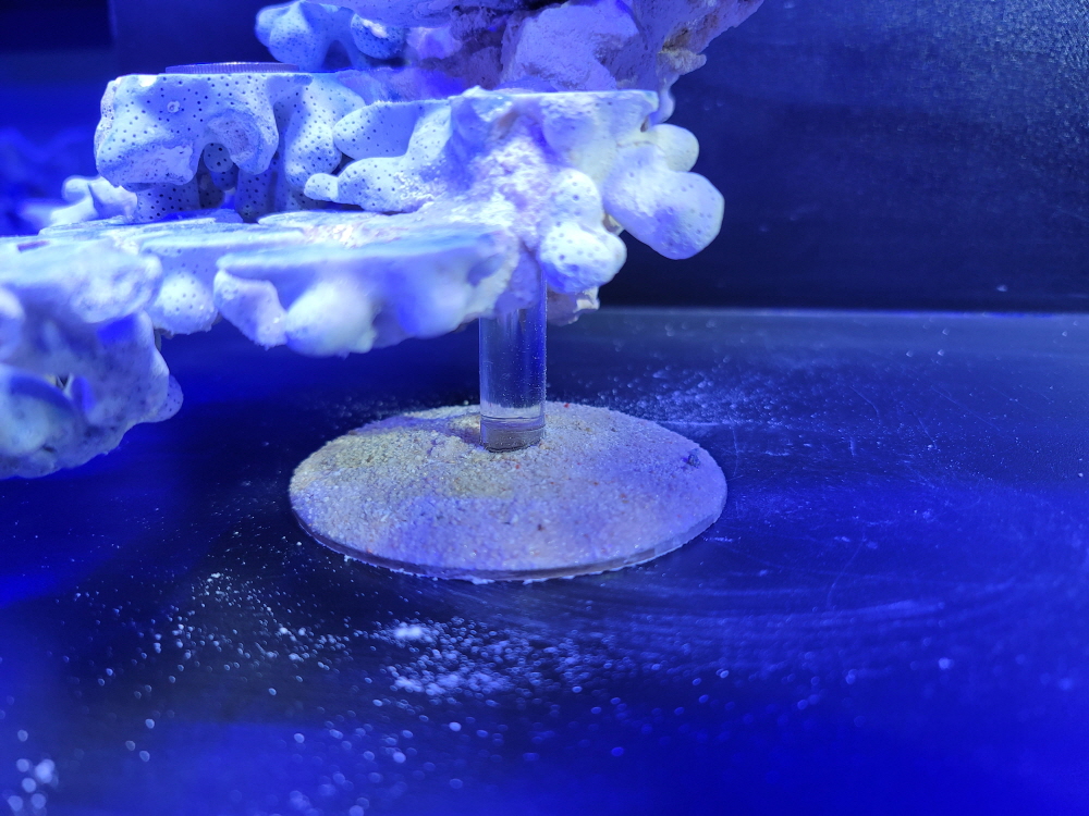 하부 기둥을 두꺼운 아크릴 봉을 사용하여 수조에 안착시 거의 보이지 않게 되므로 락 본체가 물위에 떠있는 모습을 연출하는 성형락 입니다.