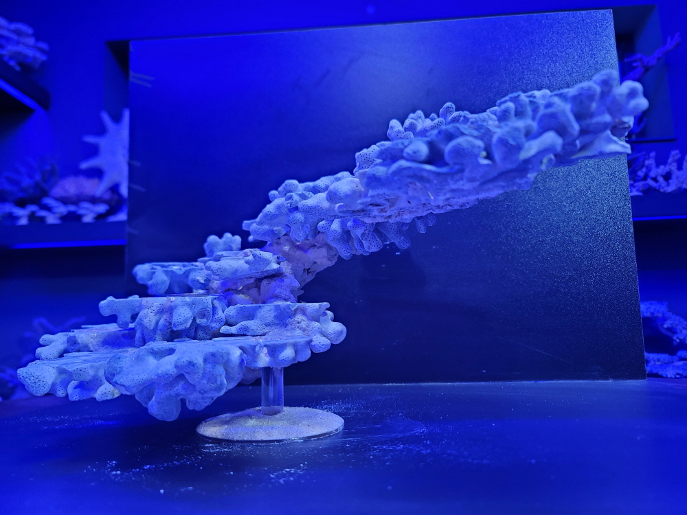 아크릴봉에서 부터 시작되는 메인 줄기는 마로고 아라고 나이트락을 이용하여 디자인을 잡고 청산호를 가공하여 플레이트화 하여 디자인을 잡았습니다.