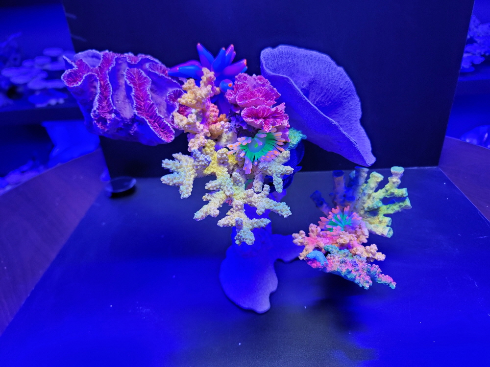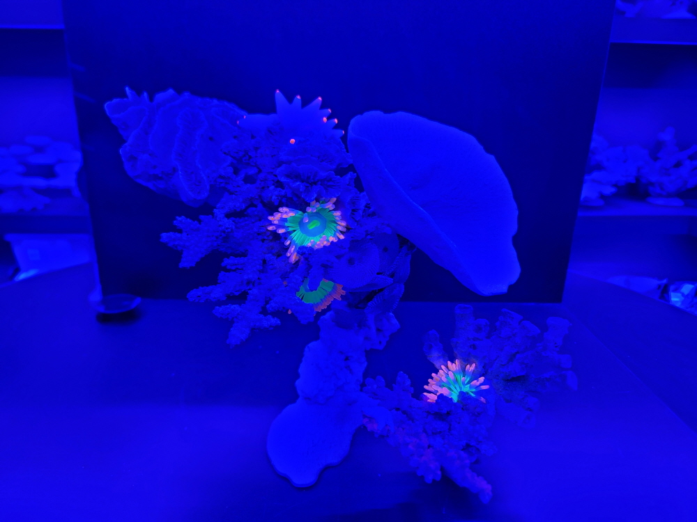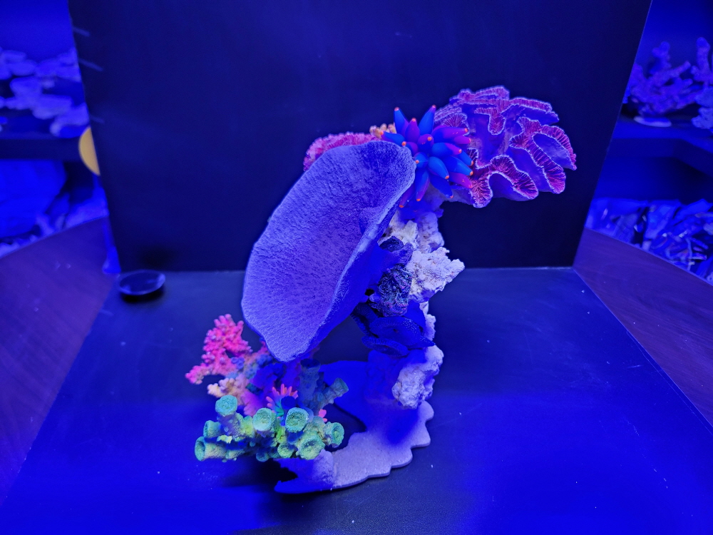 별도로 마지막 사진처럼 실내등을 끄고 조명 블루 빛을 받았을 경우 일부 산호촉에서 형광빛이 나오게 되므로 이또한 보는 재미가 있습니다.