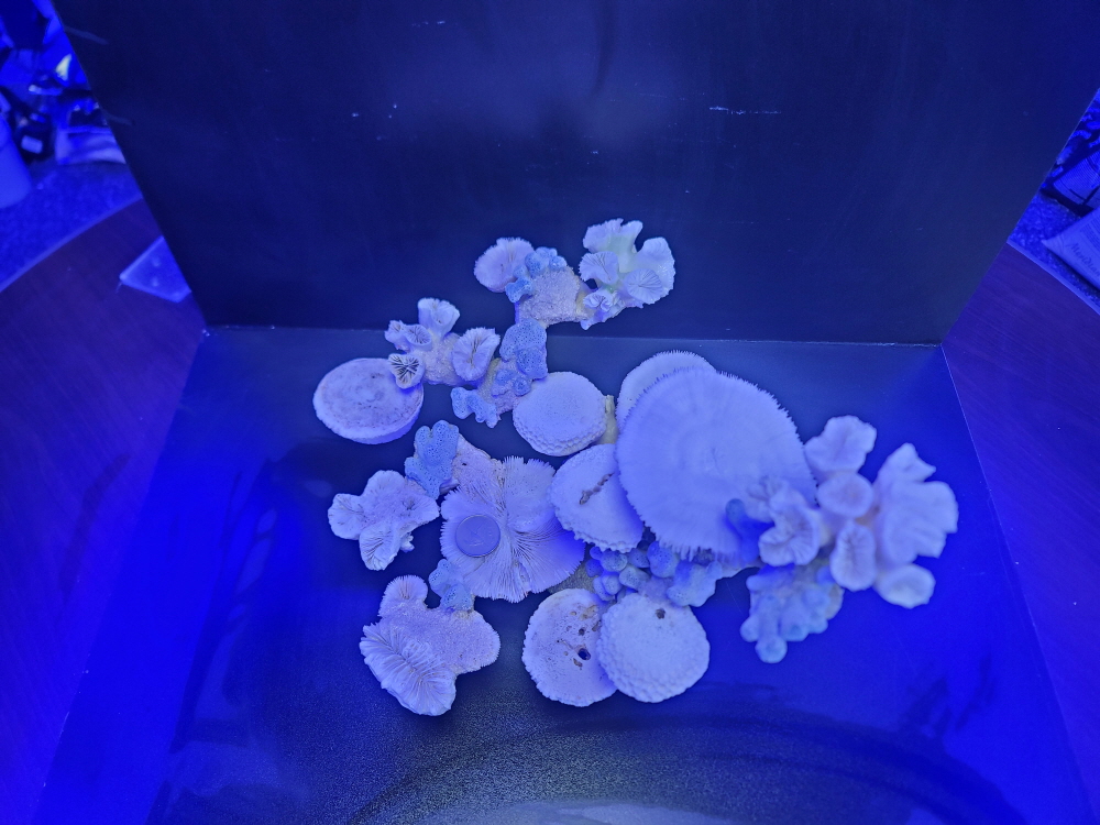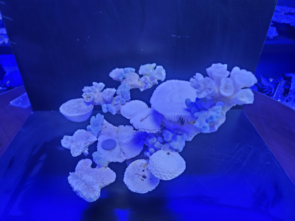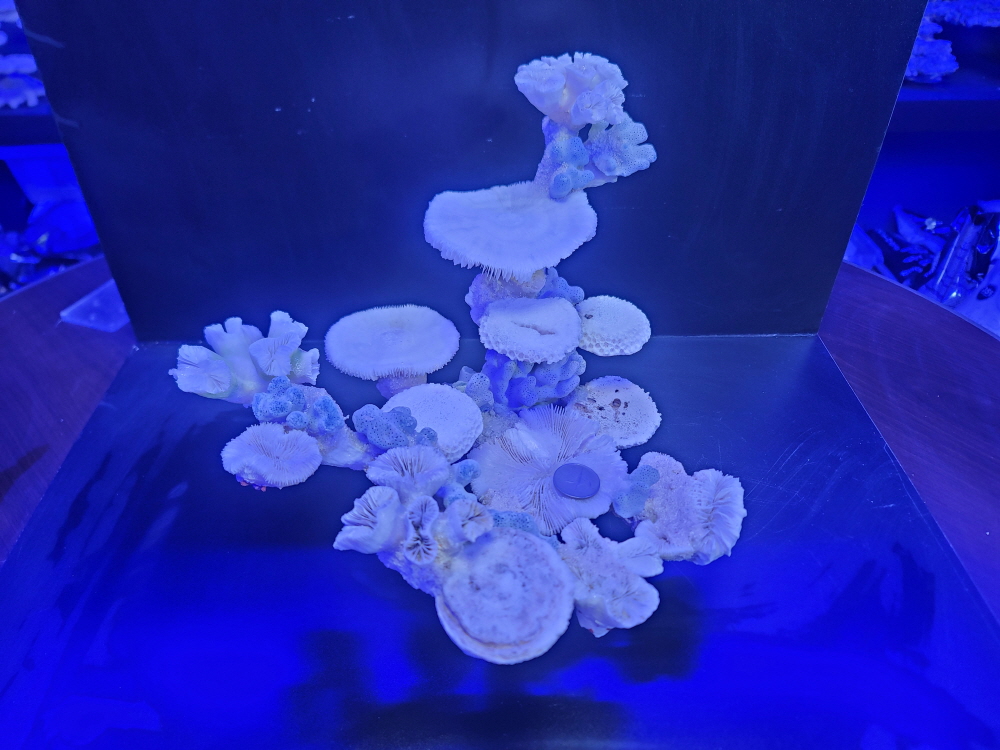 클램.토치.파비아... 완전히 소킹하여 사진처럼아주 깨끗하게 클리어링 된 플레이트를 또자르고 다듬어서 크고 작은 산호를 다 올릴 실 수 있게 제작이 되었습니다. (플레이트 크기는 사진상 500원 동전 크기를 참고 하세요.)